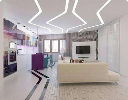 Для начала стоит посмотреть фото готовых проектов – они доступны на сайте. Затем задать себе вопрос: какие возможности должны быть у покрытия. Например, белое подходит ко всему, с подсветкой наиболее функционально, с помощью ПВХ-покрытия можно защитить ремонт от воды, а некоторые виды тканевого дышат.